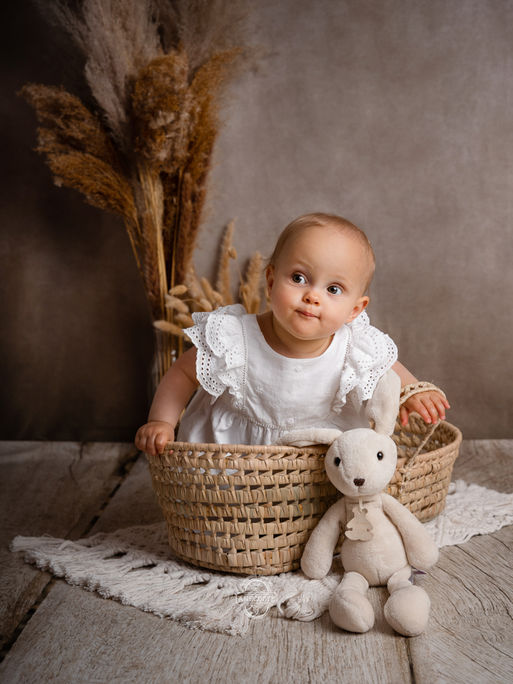 Séance parfaite pour les bébés entre 4mois et 1 an, elle est composée de photos de bébé seul et en famille.